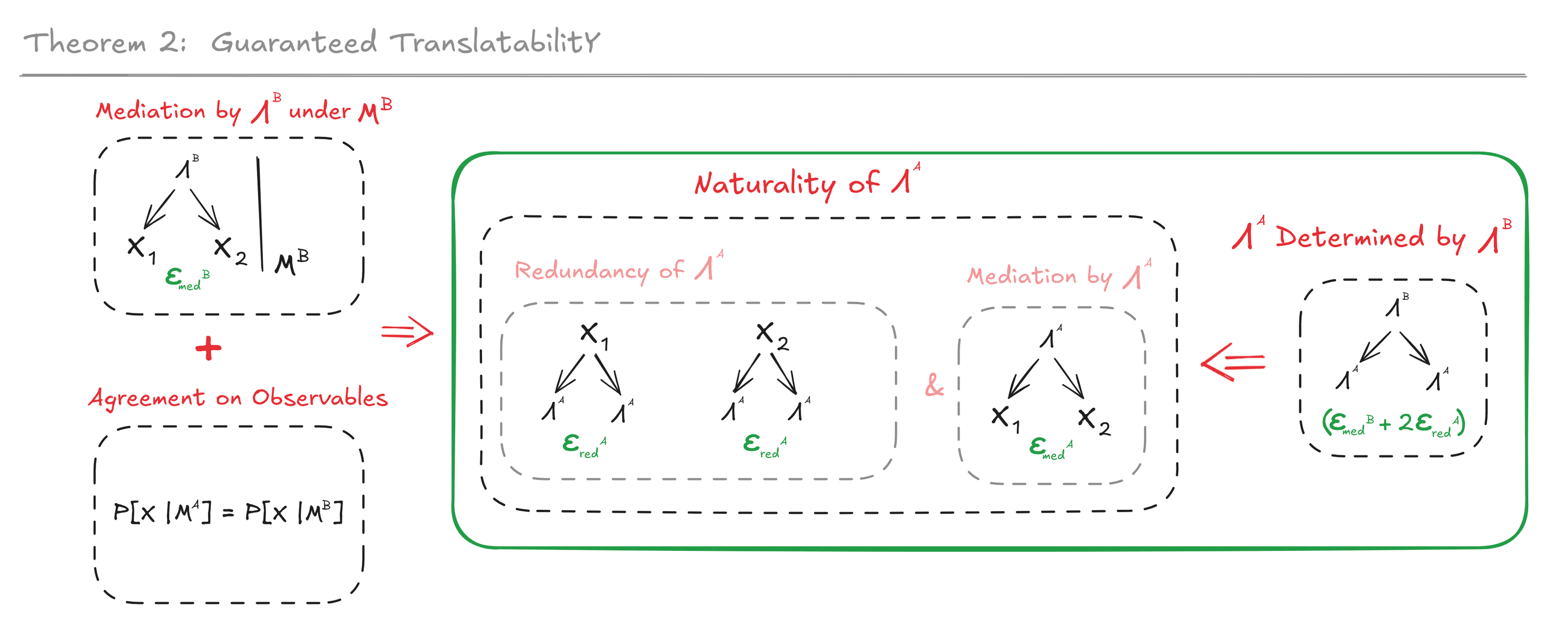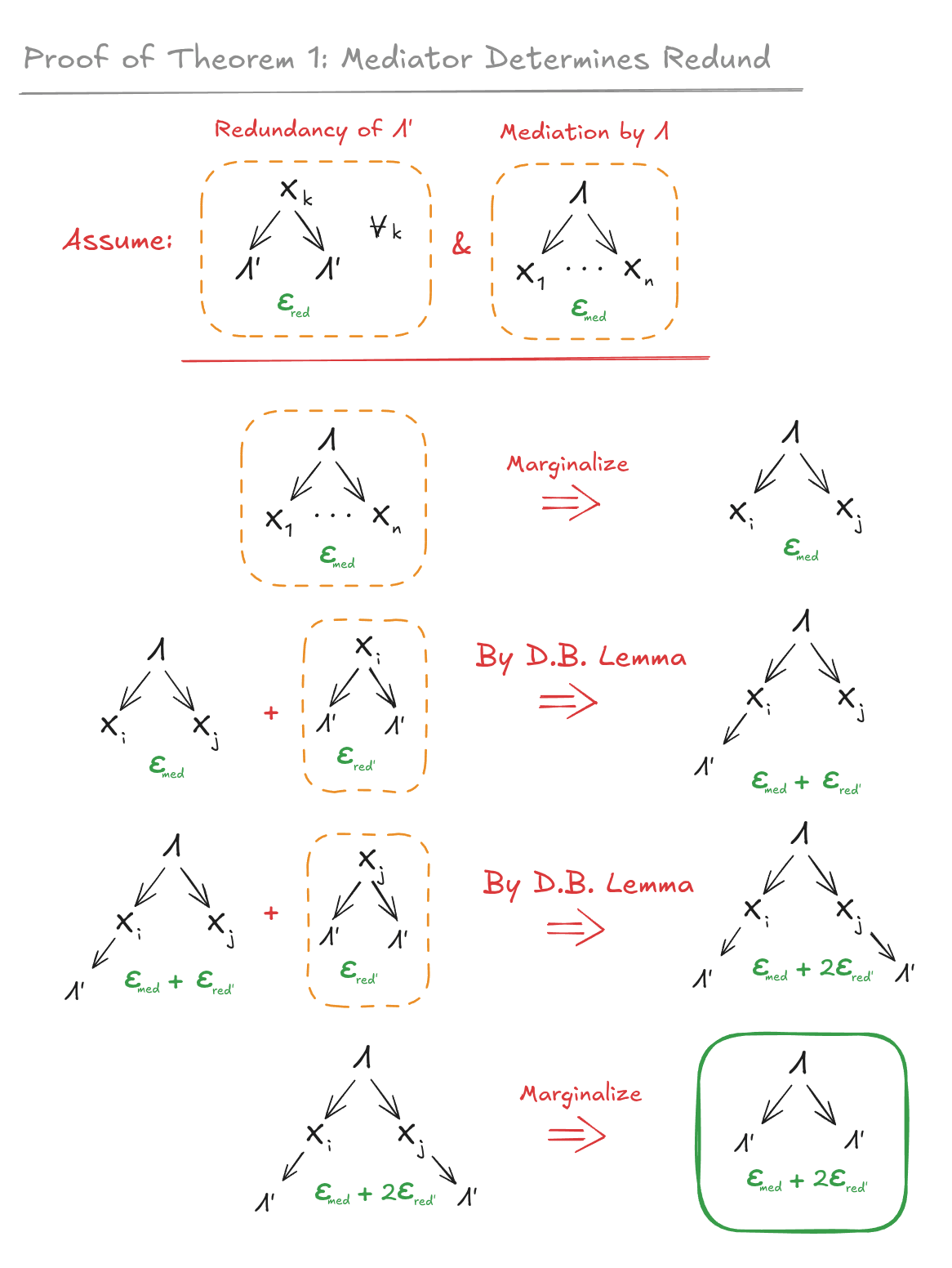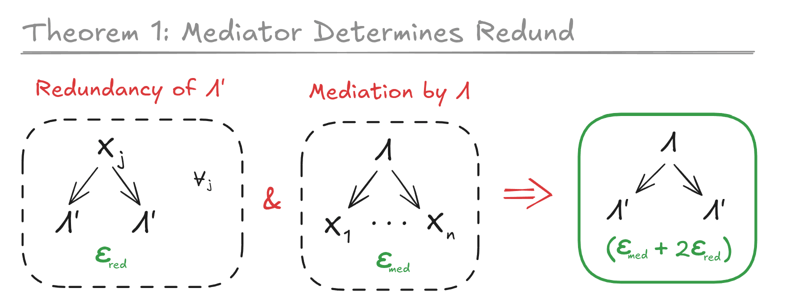 The graphical statement of the Mediator Determines Redund Theorem is shown below, including approximation errors. The proof is given in the Appendix.