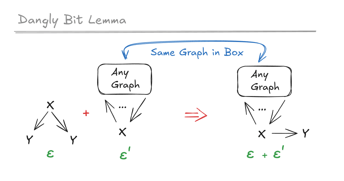 If holds to within bits, and any other diagram involving holds to within bits, then we can create a new diagram which is identical to but has another copy of (the "dangly bit'') as a child of . The new diagram will hold to within bits.