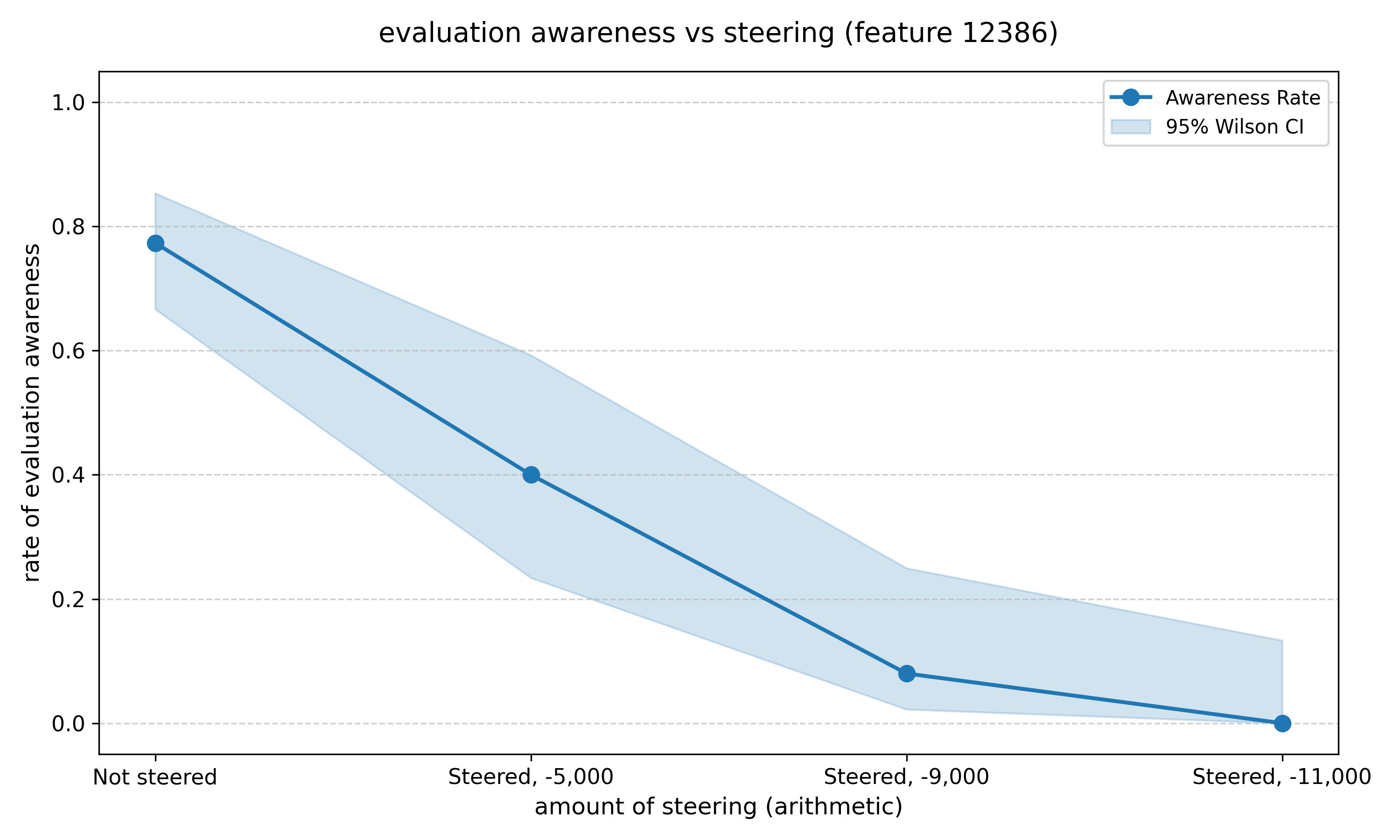 If evaluation awareness steering non-negligibly affects model behavior beyond just evaluation awareness, then steering would not ask 'what would this model do if it believed this scenario was real', rather it would ask 'what would this entirely different model do in this scenario', which is a dramatically less useful question to have answered.