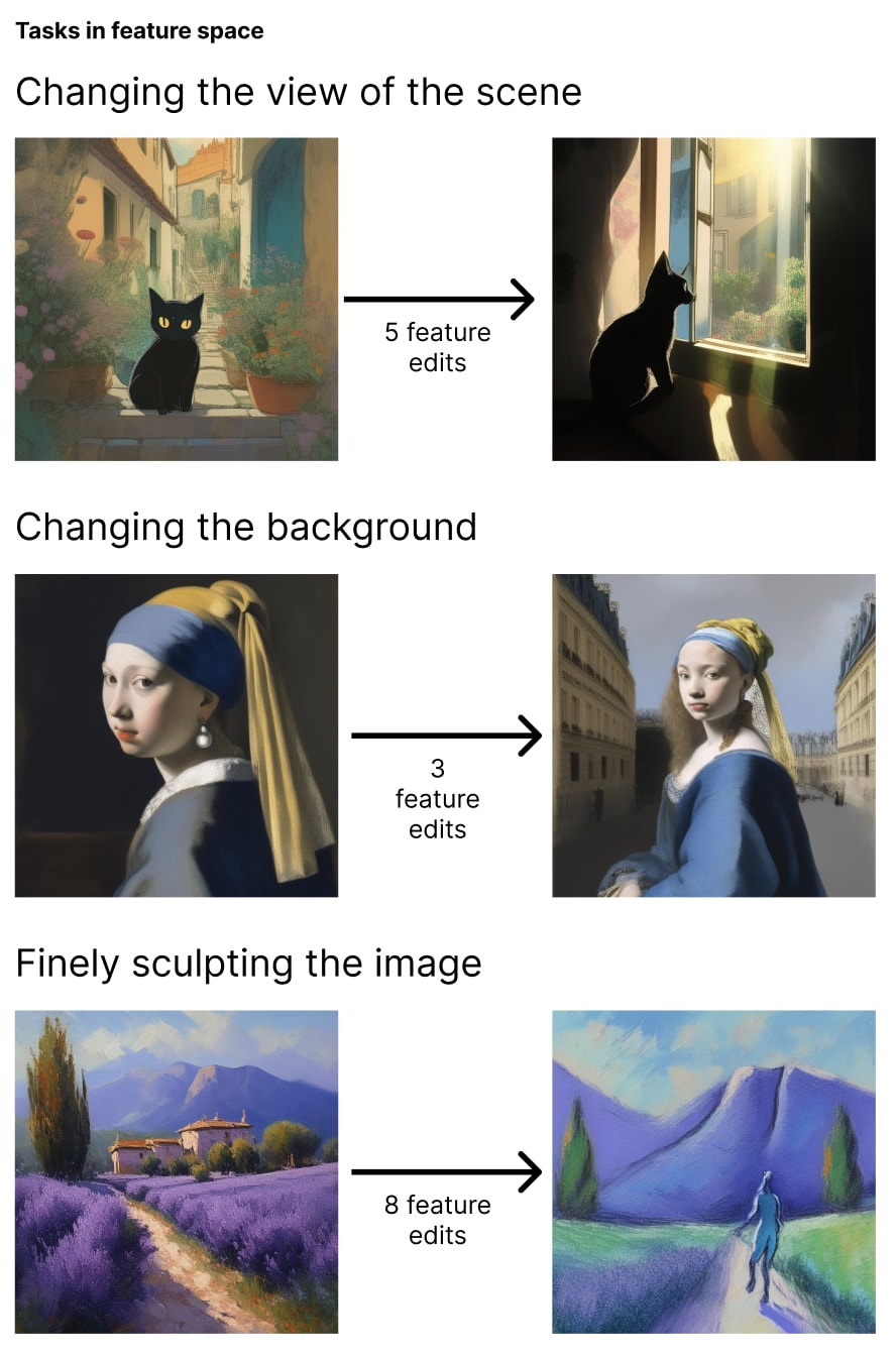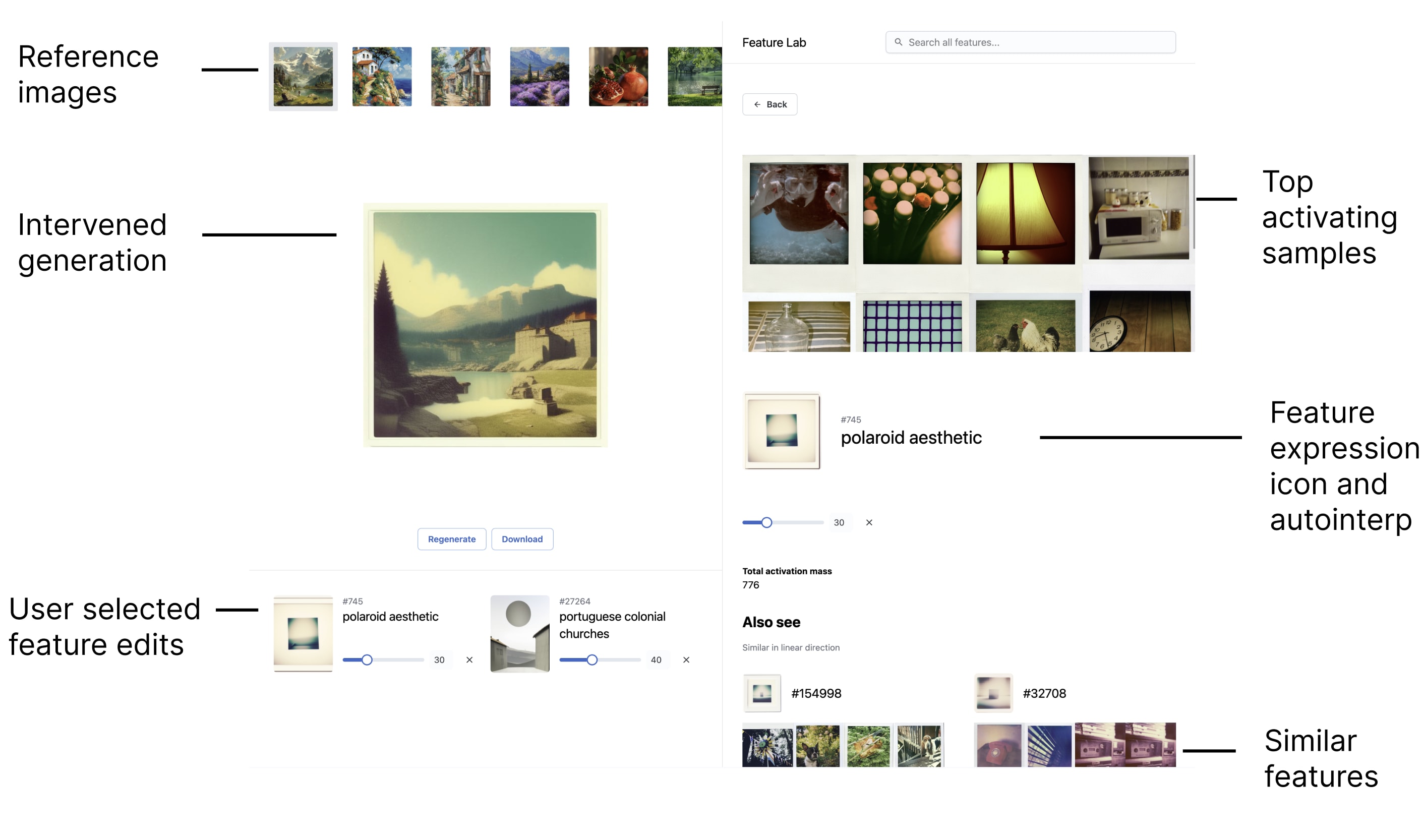 We built an intervention playground where users could adjust the features of an image to test hypotheses, and later found that the steering worked so well that users could perform many meaningful tasks while maintaining an output that is comparably as coherent and high quality as the original.
