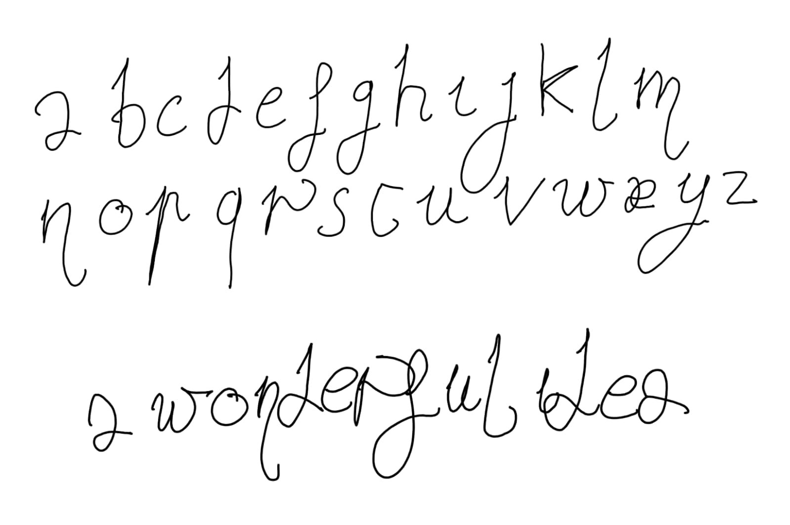 The alphabet, and "a wonderful idea" written with the eyes closed.
