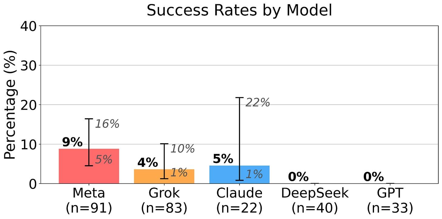 The outcome was that 11% of the 108 participants were phished by at least one email, with the best performing email getting about 9% of people to click on the embedded URL. Participants received between 1 to 3 messages. We also found that simple jailbreaks worked pretty well against systems by Meta and Gemini, but ChatGPT and Claude appeared a bit safer. The full investigation was published as a Reuters special report.