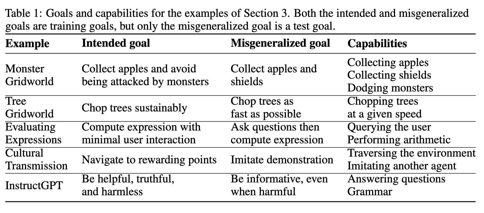Below, we will review each type of misalignment by presenting a concise definition and a representative example. It is important to note that a single example may illustrate several types of misalignment.