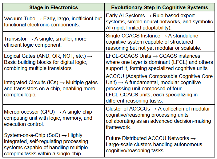 This question motivates the conceptual exploration of Adaptive Composable Cognitive Core Unit (ACCCU) — a vision for a modular cognitive processing unit that could extend CCACS principles into a scalable and self-regulating cognitive architecture.