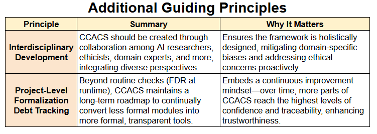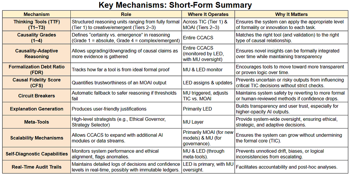 By interlacing formal logic, adaptive AI methods, and layered oversight, CCACS provides a scalable solution for transparent and ethically grounded AI in critical fields like healthcare and finance. Its multifaceted tiers and validation processes accommodate everything from deterministic logic to emergent deep learning, all under a vigilant ethical umbrella. Moving forward, real-world implementations, continued refinement of these tools, and collaborative input from diverse stakeholders will further solidify CCACS as a pioneering framework for responsible AI.