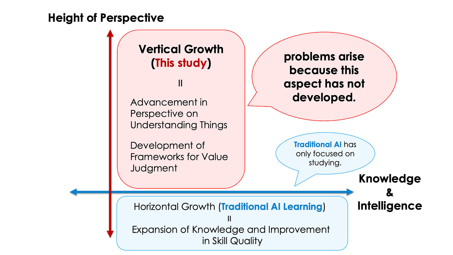More specifically, we suggest conducting research and development on AI’s "vertical growth"—a learning process that has never been actively explored before.