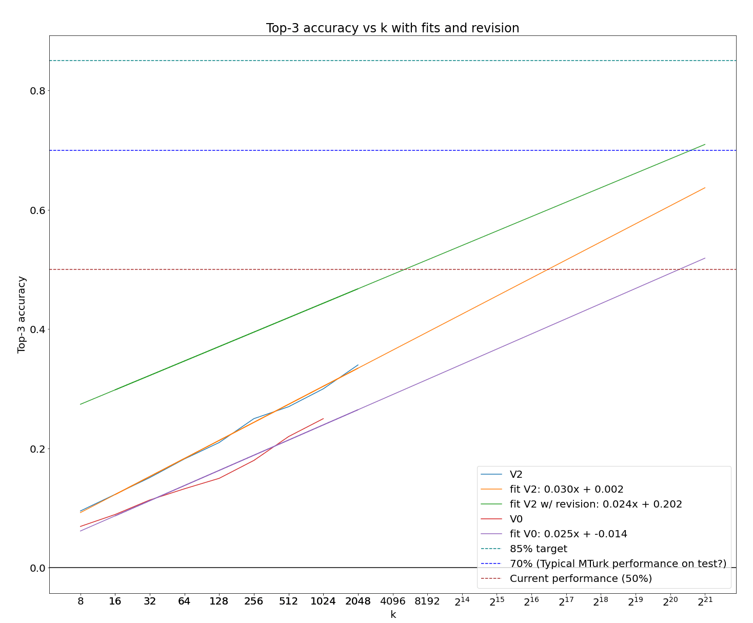 Getting to “just” 70% performance with my current method would take 2^21 samples (around 2 million)! I think 70% is probably similar to the performance of typical people on MTurk on the test set, though no number is known.