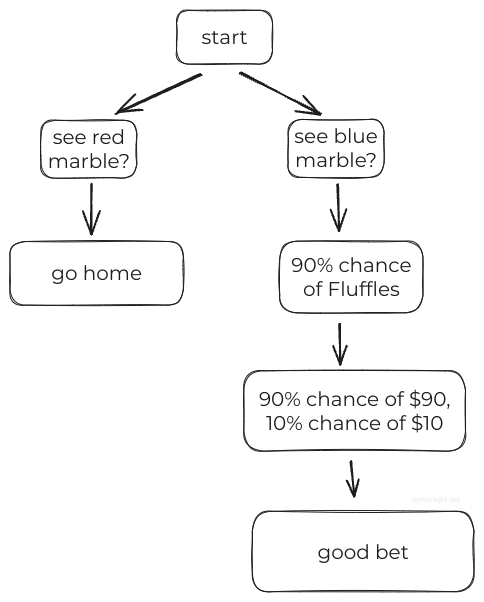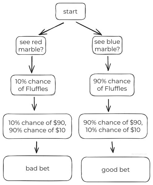 As you’d expect, a blue marble means you’ve probably got Fluffles, so you should take the deal. A red marble means you’ve probably got Snowcone, so you shouldn’t.