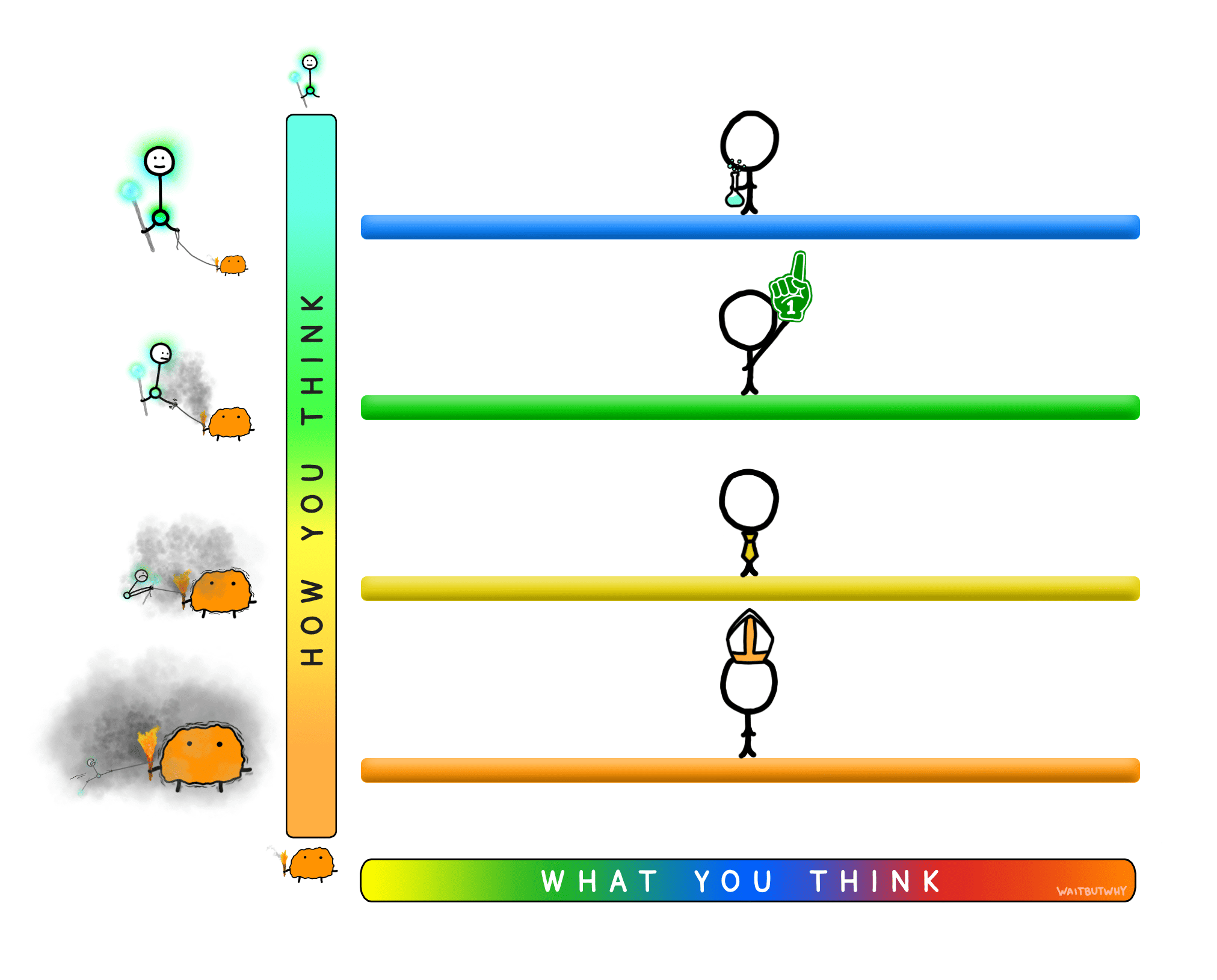 Another frame to look through here is that of the Thinking Ladder from Tim Urban's book What's Our Problem?. It's basically a spectrum of how much you lean towards thinking like a scout vs thinking like a soldier.
