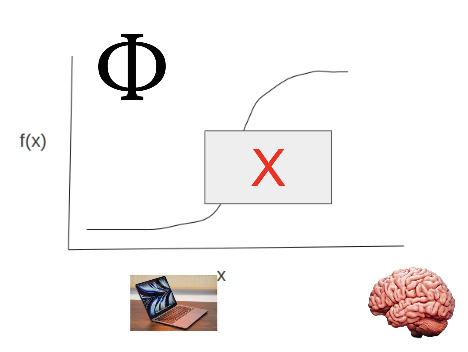 The explanatory gap in the philosophy of mind, represented by the cross above, is the difficulty that physicalist theories seem to have in explaining how physical properties can give rise to a feeling, such as the perception of color or pain.