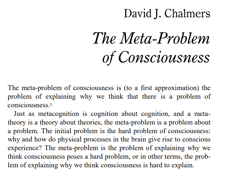 To explain this virus, I suggest we consider the metaproblem of consciousness. The meta-problem consists of explaining why we think consciousness is a difficult problem.