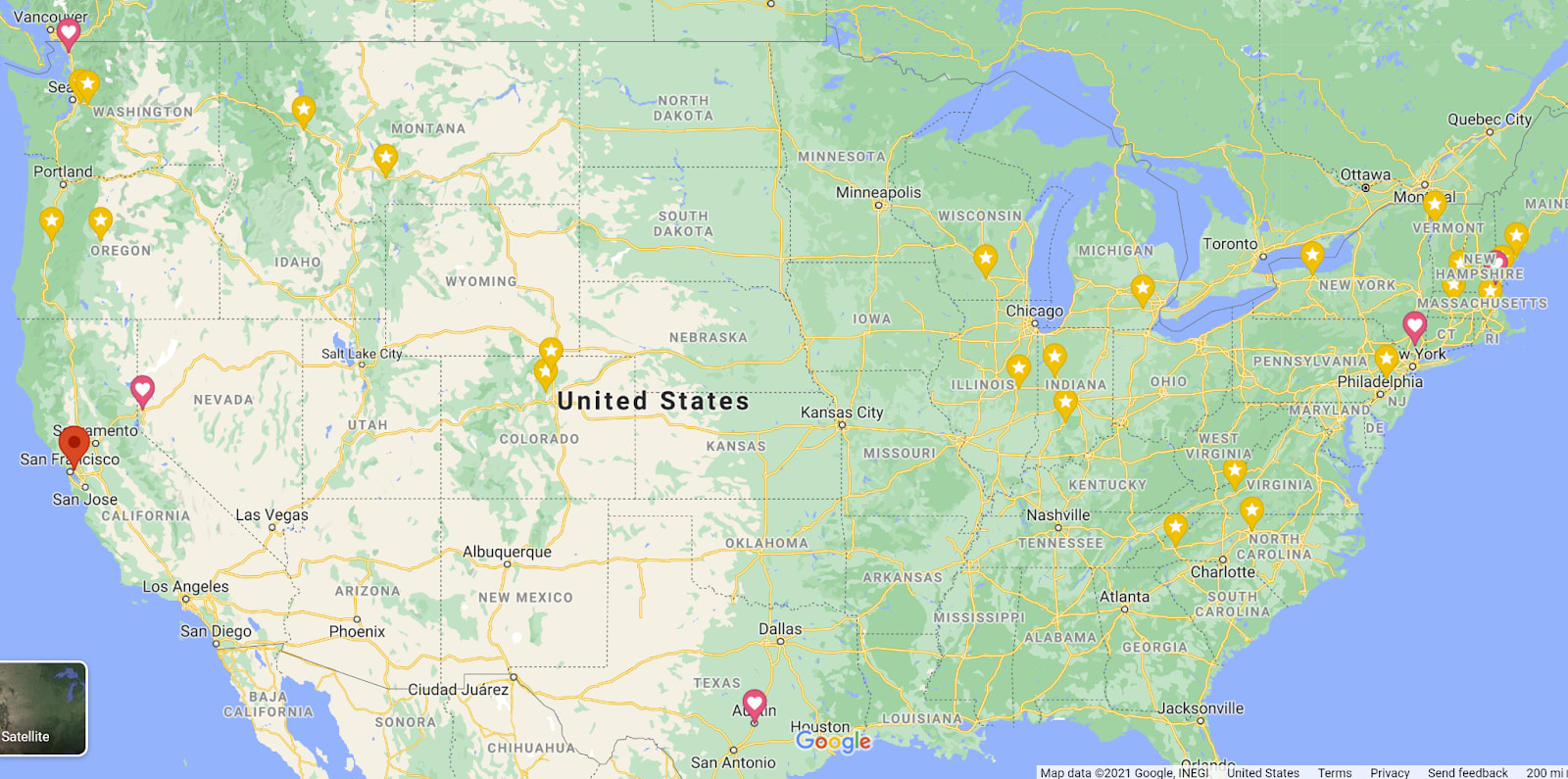 We’ve spent hundreds of hours searching through long lists of candidates, and have pared those down to 30 relatively promising parts of the US, including two that look quite good as campuses and three other areas we especially like (but haven’t found a property in).