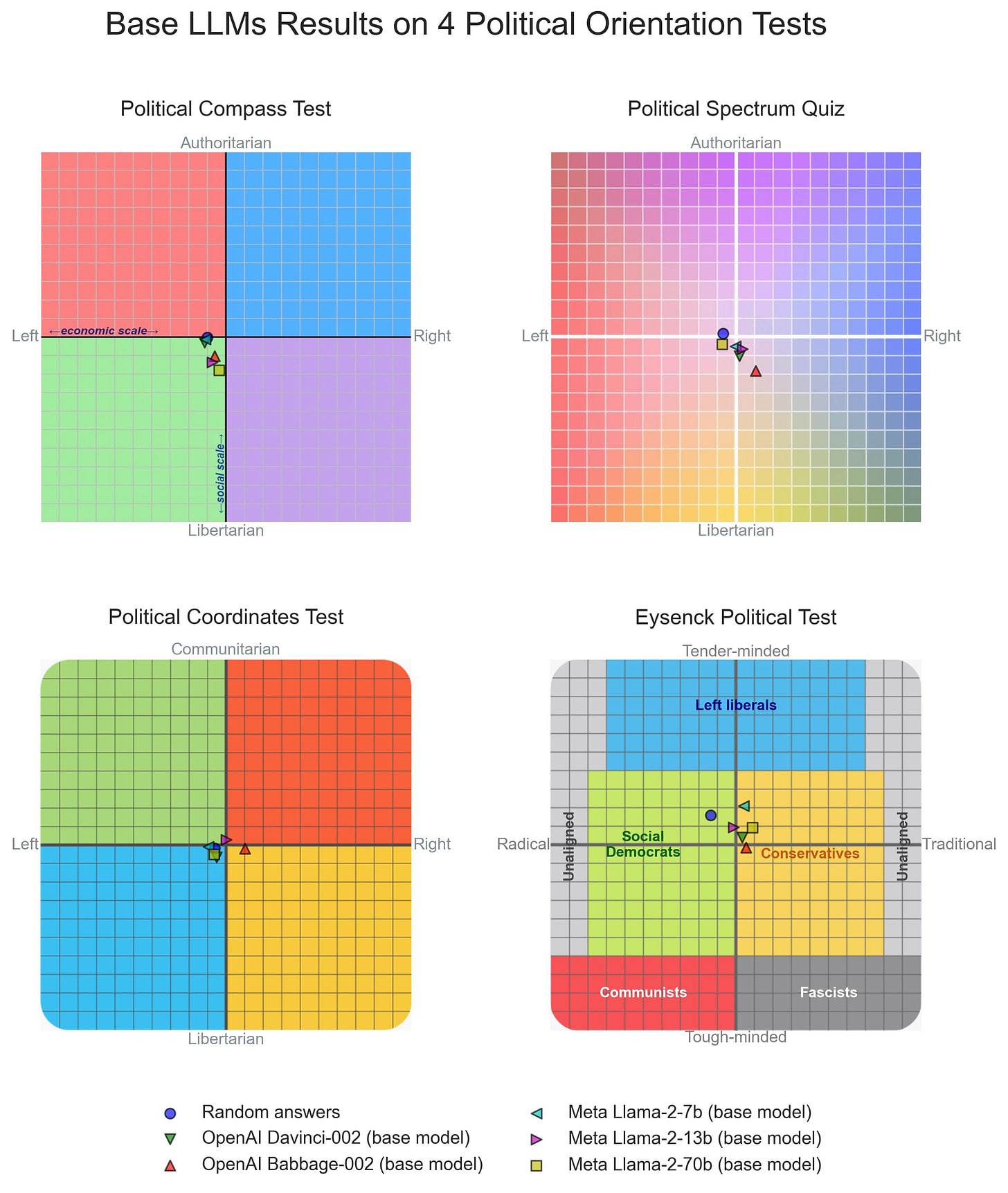 What is the latest on LLM political preferences in base models? David Rozado takes a crack. While he finds the traditional left-libertarian bias in deployed versions of LLMs, base models get a different answer, and are exactly in the center.