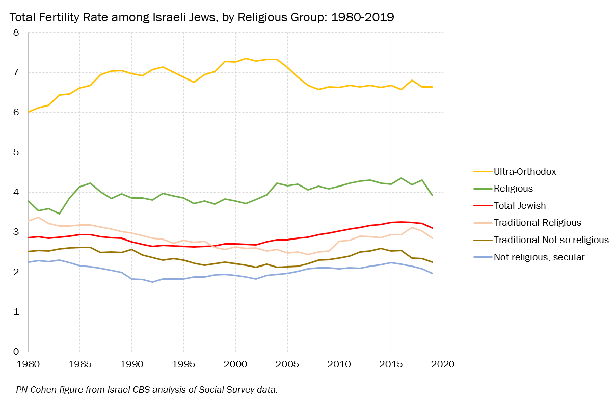 Israel is the only developed country with a high TFR, and it's TFR has remained more or less stable at ~3 for the last 30 years or so. It's a good test case to see which of these factors might matter more or less than the others.