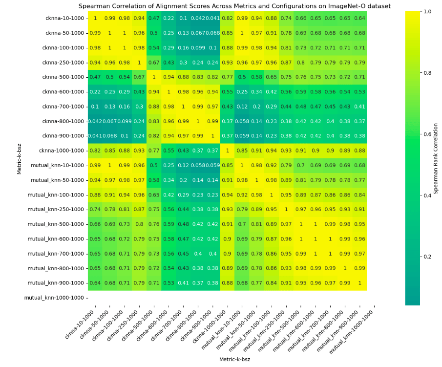 To explore this question, the experiment was extended to ImageNet-O—a dataset specifically designed with out-of-distribution (OOD) images compared to ImageNet. Using ImageNet-O, the correlation analysis of alignment scores across various metrics for image classification models was re-evaluated.