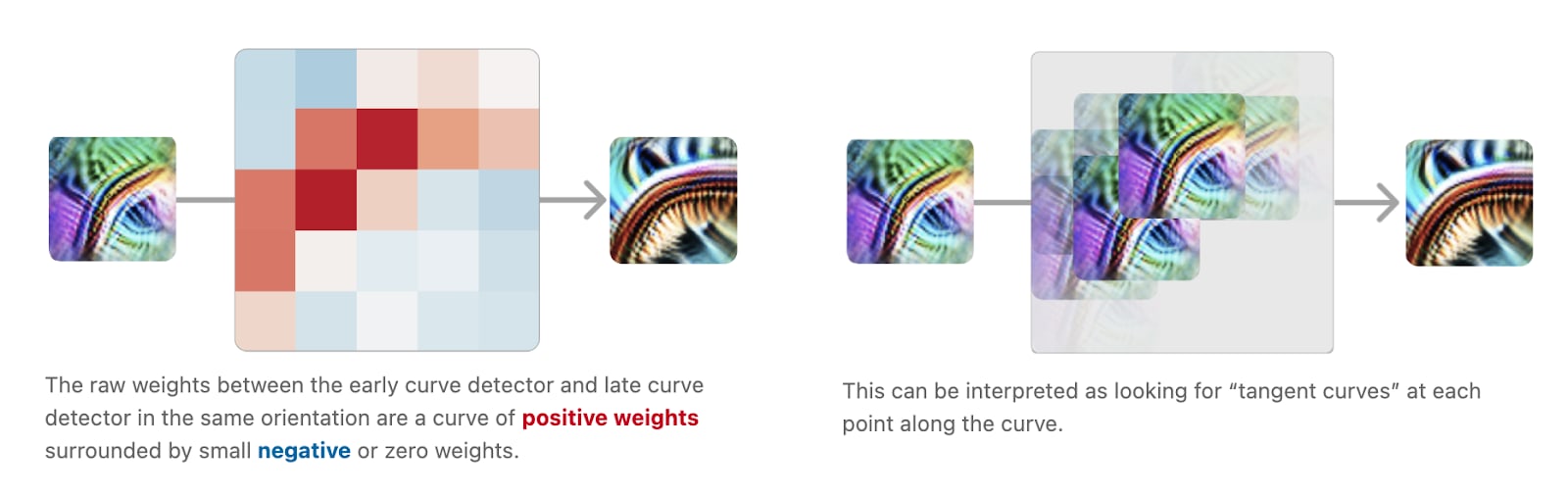Informal heuristic explanations are already commonplace in mechanistic interpretability, such as when analyzing circuits. For example, consider the following circuit between an "early curve detector" neuron and a "late curve detector" neuron, consisting of the weights in the 5x5 convolution between the two neurons: