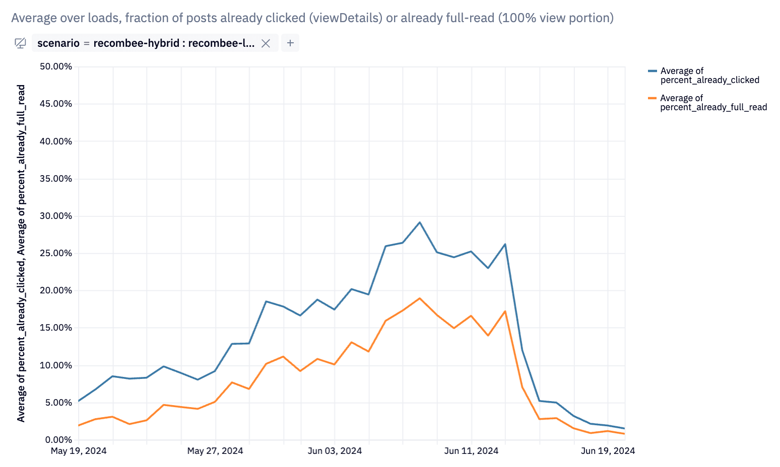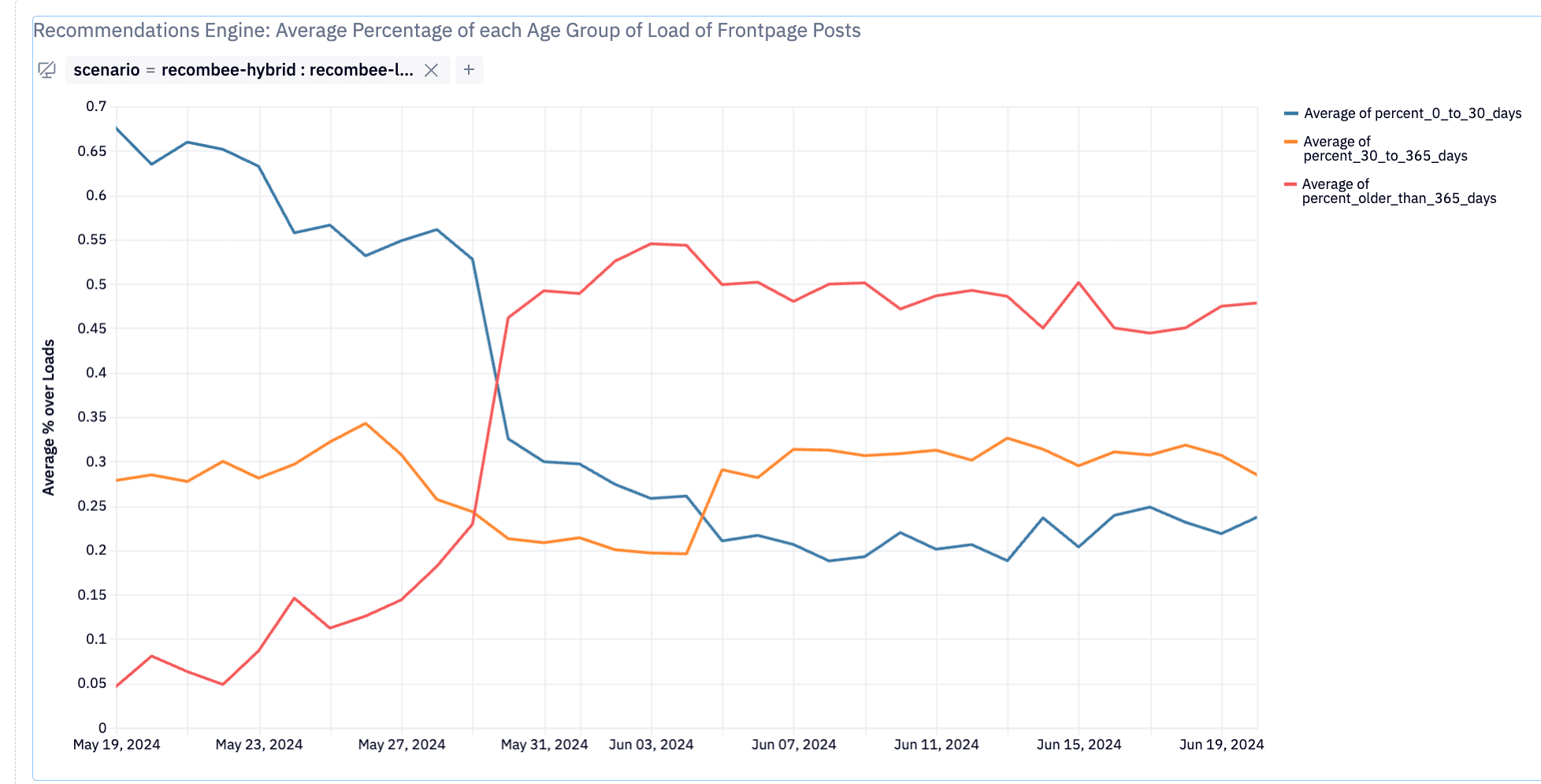 We found that a hybrid posts list of 50% Latest and 50% Recommended lets us get the benefits of each algorithm[4].