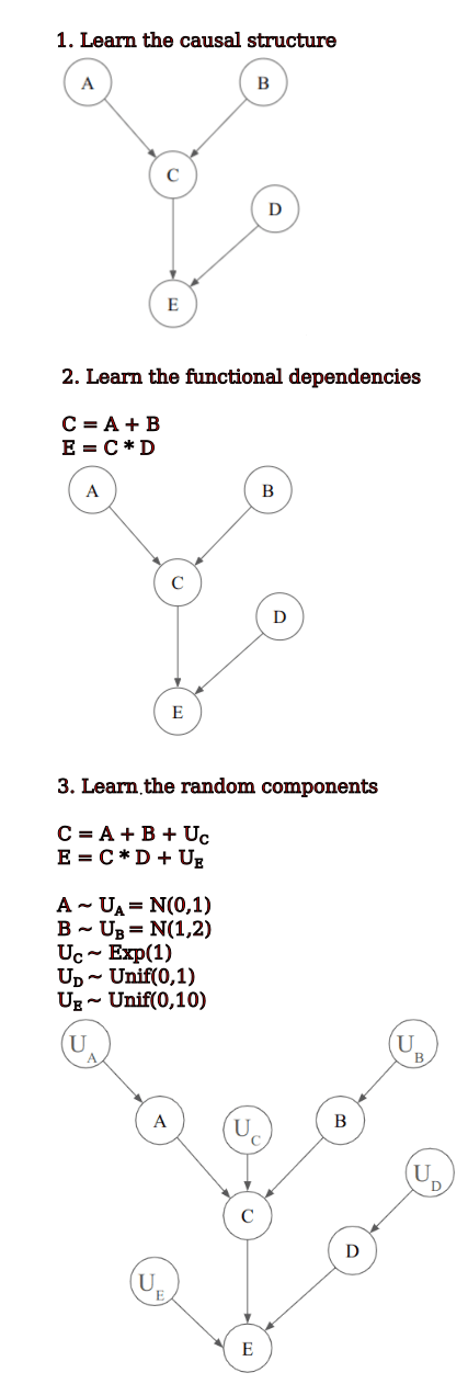The three "steps" provide a handy model for thinking about the process of an agent learning a causal diagram, as each step increases the resolution to what has been achieved after the previous one.[5] Another reason to think about them in this exact sequence is that to get the function aspect right, we first need to get the structure aspect right (basically by definition); and, similarly, to get the randomness aspect right, we need to get the function aspect right first (this is not strictly true but approximately true). This motivates the categorization of errors in learning and using causal diagrams into errors of structure, function, and randomness, which we describe in detail in Section 2.