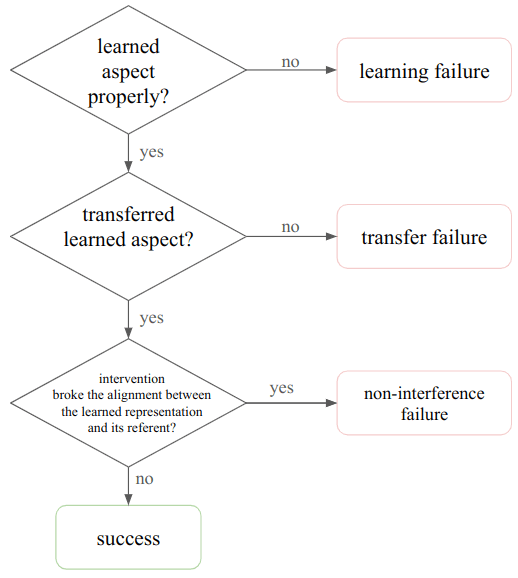 If we think of an idealized process of learning the causal diagram, we can think about learning these three aspects one after another and identifying which link in the chain failed.