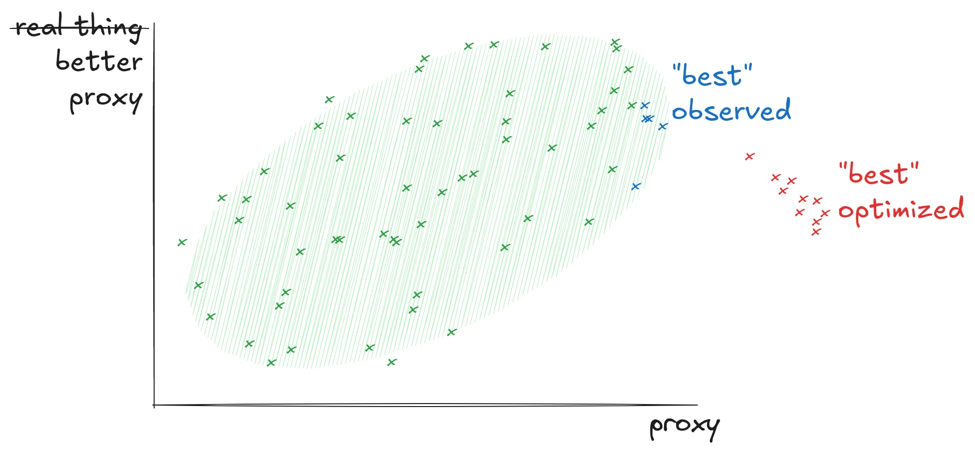 Question from a conference discussion - do you have real-world-data examples in a shape like this illustration of how I understand Goodhart's law?