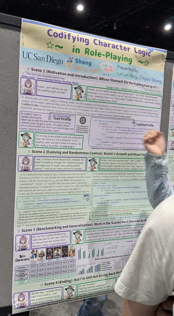 I had a lot of fun in this room. It contrasted a lot with going to Everything Procedural earlier this year. That is also a conference about what creatives can create with computers, stocked with game dev academics, indie developers and some big studios. But there were only 4 AI talks out of a dozen, and the general attitude was that AI should know its place as a niche tool in a much larger toolbox. At NeurIPS, rdos were throwing AI at any idea, and seeing what sticks. I liked that a lot more, but to be fair, I don’t think any of the presenters were the sorts to care about the job loss or copyright issues that were an unstated premise at Everything Procedural.