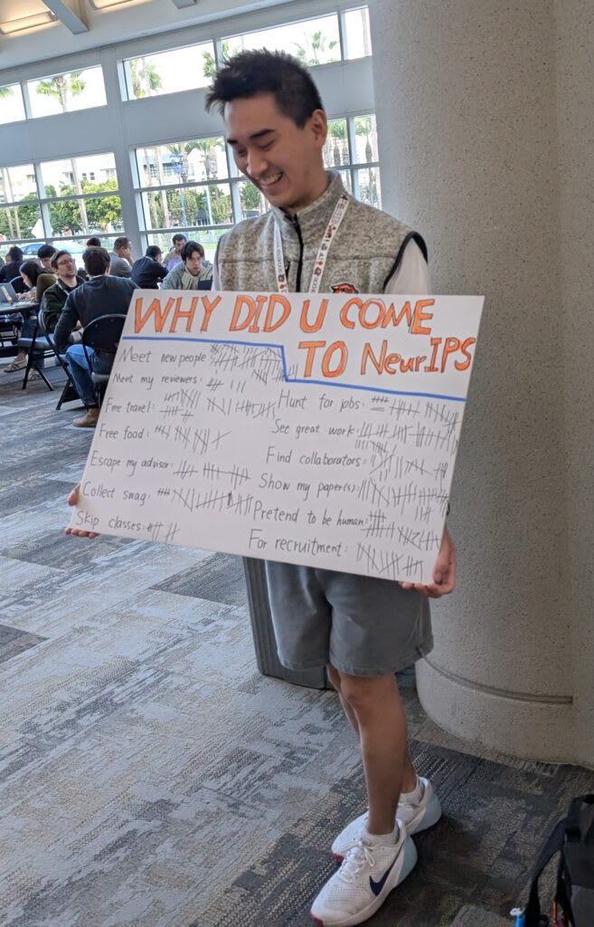 I recently went to NeurIPS, the world’s largest academic AI conference. This was a multi-purpose trip: present a poster at the MechInterp Workshop and hobnob with other AI Safety researchers; get a general impression of state of the art in AI, particularly the gamedev/creative space, and represent Timaeus, the company I’ve recently joined.