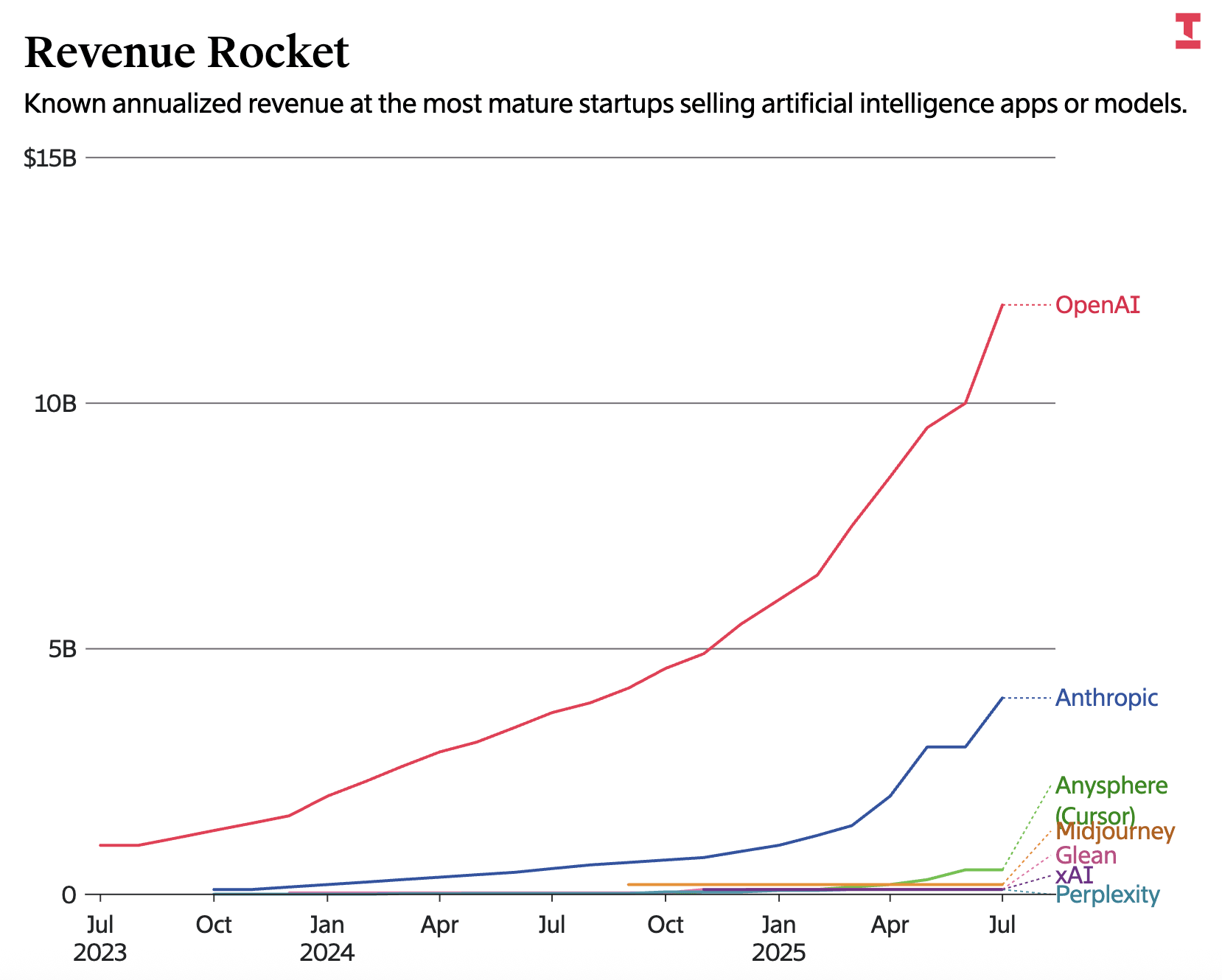 Practitioners and investors who are in the AI “arena” by now are probably already accustomed to explosive growth of AI-native companies. I highlight several examples: