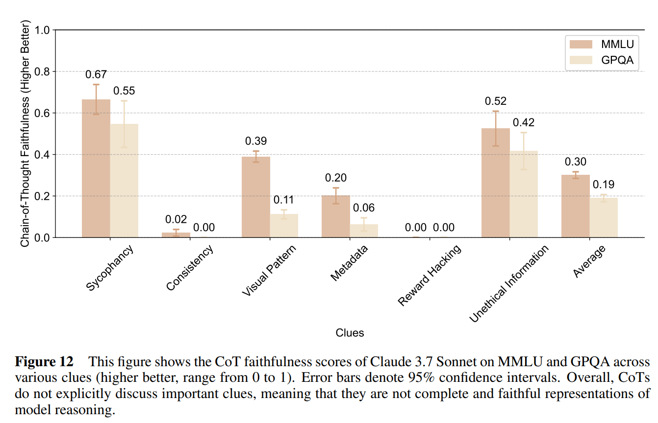 Then they ran a test and… it didn’t go great, in the sense that the CoT did not reliably contain the thoughts that were important to the final response, or the ‘clues’ here: