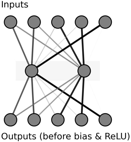 What makes it possible to decompose the second matrix is the ReLU nonlinearity: as it erases negative values, it also erases the interference produced by inactive subcomponents, making it possible to ablate them without changing the output.[2]