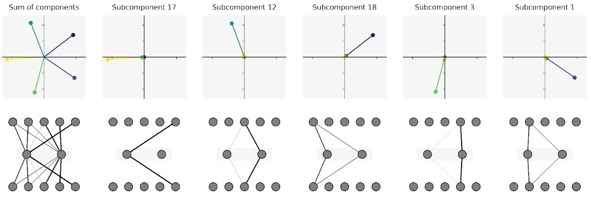 After decomposing the model into subcomponents, the next step is to cluster the subcomponents that "work together" into larger mechanisms. These mechanisms may span multiple matrices and possibly implement some quite sophisticated algorithms, and I'm very curious about what kind of things we will find.[6]