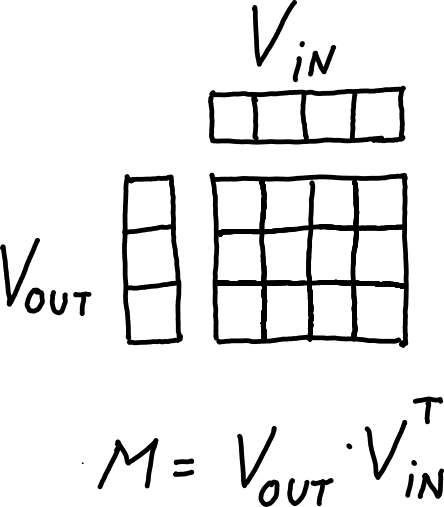 By definition, a rank-1 matrix can be written as the outer product of two vectors, that I’ll call Vout and Vin: