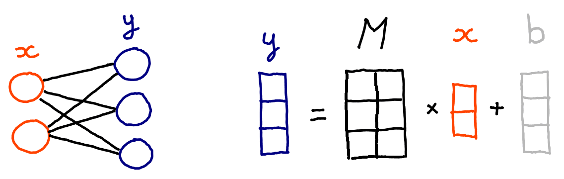 Neural networks are often depicted as little circles connected by little lines, but, under the hood, it’s all matrix multiplication. This is usually how they are implemented in practice: