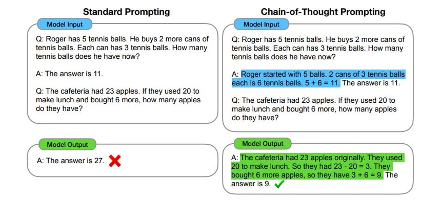 Tasks like math or reasoning problems are best solved using task decomposition, i.e. breaking a problem into small intermediate steps that gradually nudge you towards an answer. As an analogy: if you were asked what you ate for breakfast this morning, you might be able to quickly respond with “oatmeal!”, but if you are asked to divide 1377 by 51 might take you a little longer, would be easier with a scratchpad and pen, and would require several “thoughts” (intermediate steps).