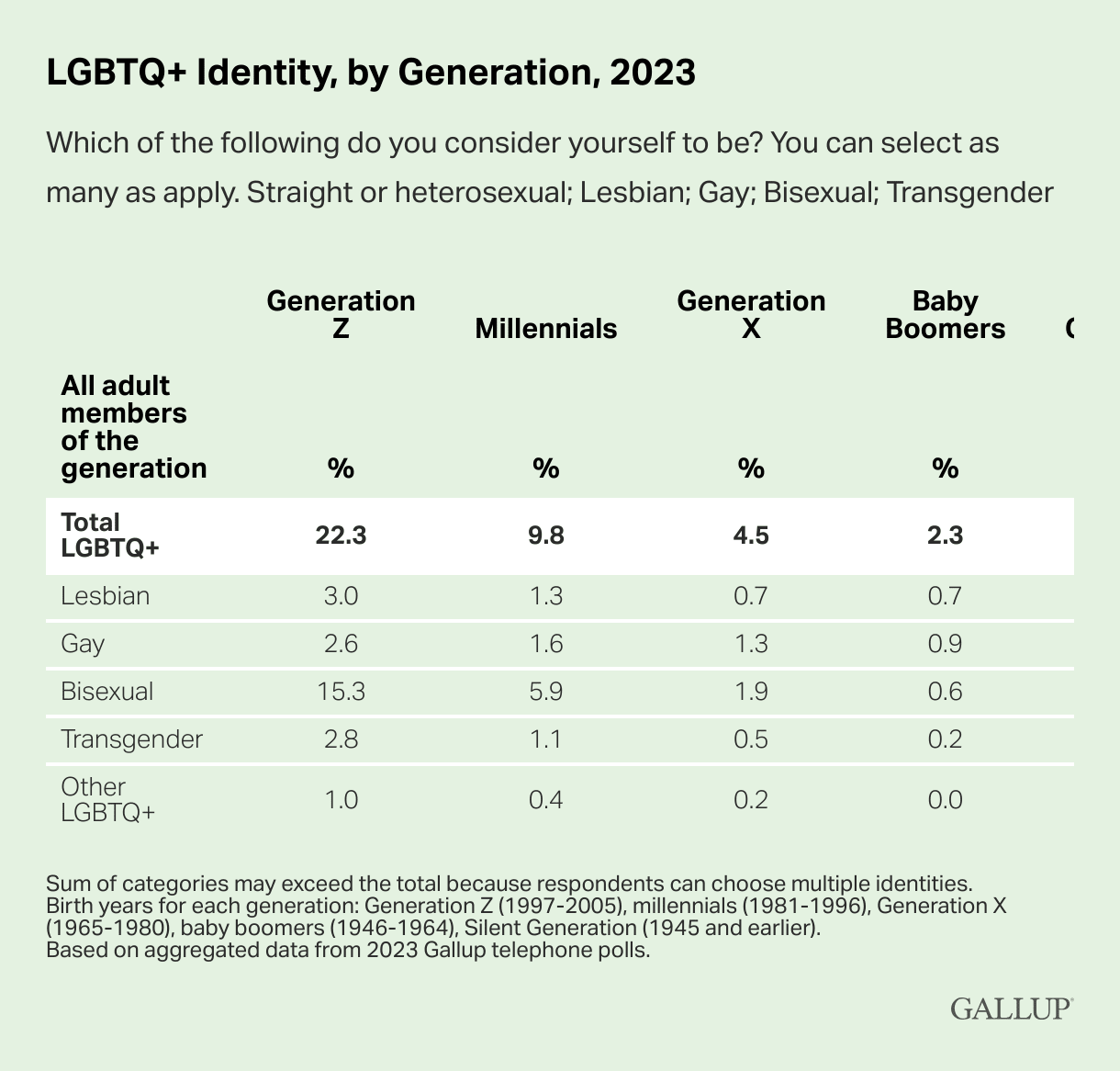 Every adolescent cohort has a higher % LGBT than the last:
