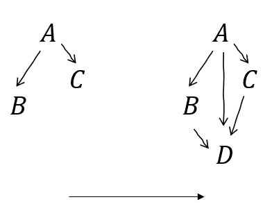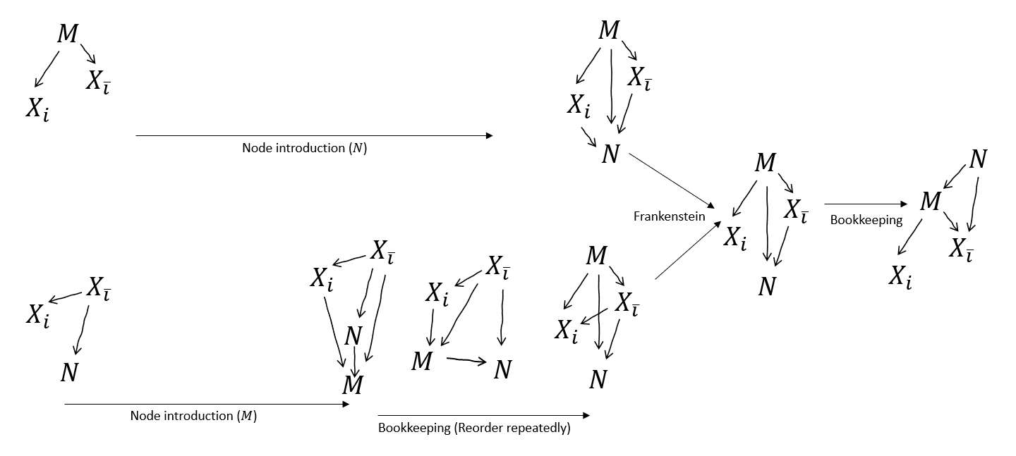 The Frankenstein rule says that, so long as our underlying distribution satisfies both of the original diagrams, it satisfies any Frankenstein of the original diagrams (so long as there exists an order of the variables which respects both original diagrams).