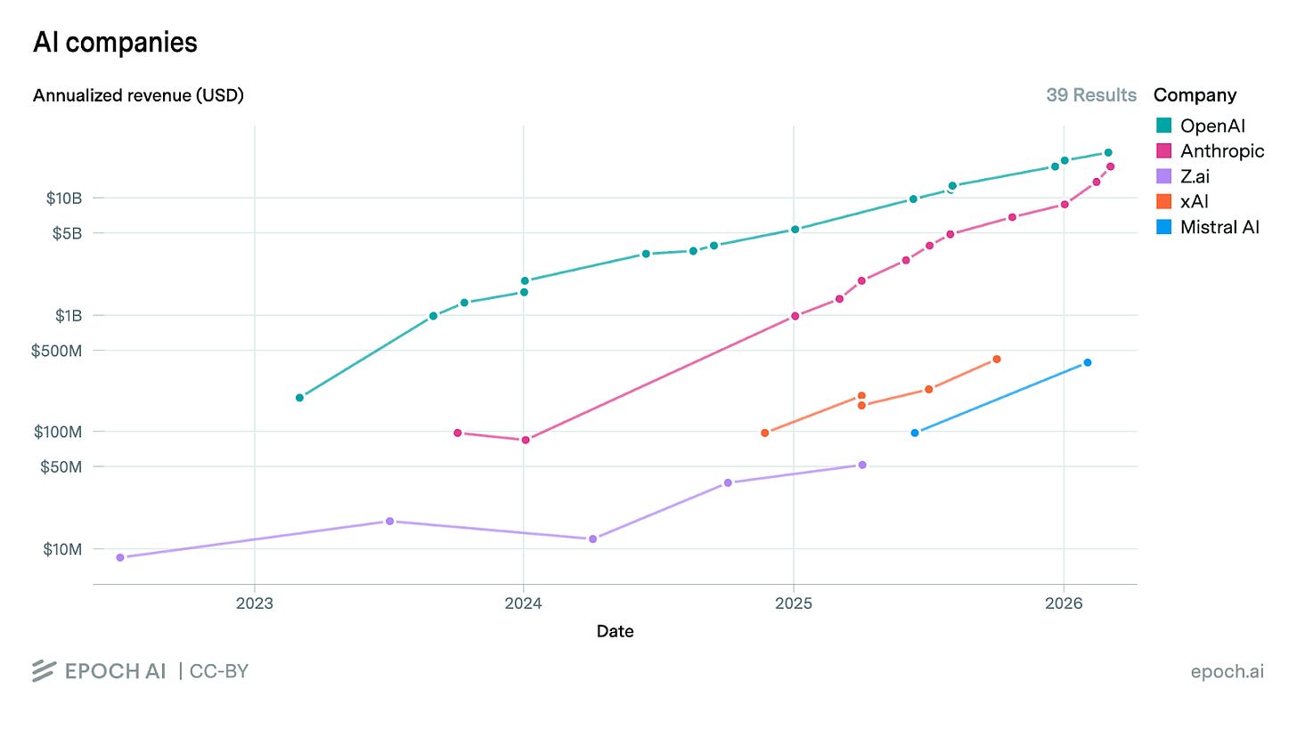 Claude Code reached an annualized revenue of over $2.5 billion in early February, just 9 months after its release. Anthropic’s trend of 10xing annualized revenue each year has continued into the $10B range.