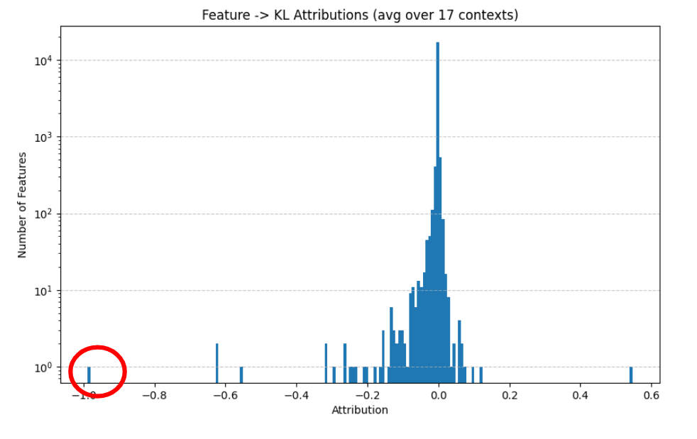 The naive way to do this is to use the feature dashboard showing the contexts where the latent fires (as in Figure 1.) We found, however, that we can get additional information from the following technique, which we call KL Dashboards.