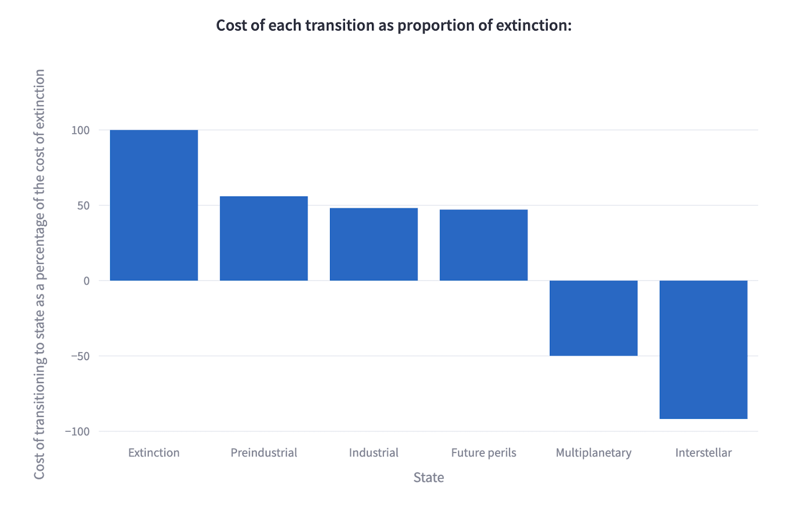 Cost of transitioning to state as proportion of the cost of extinction
