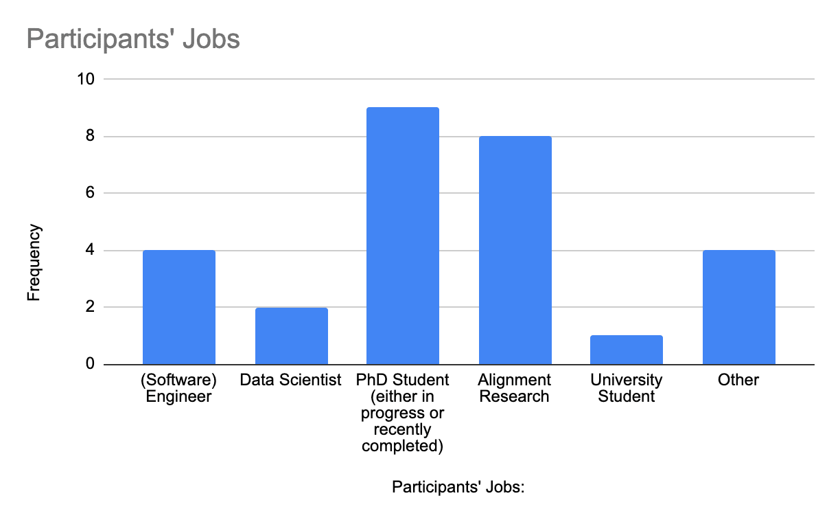 Our participants also came from diverse fields, including data science, pure mathematics, neuroscience, and forecasting.