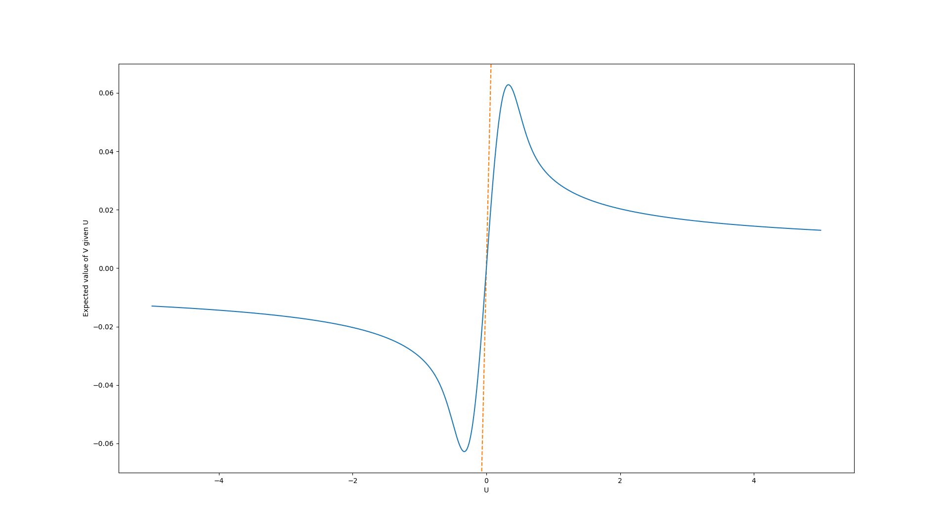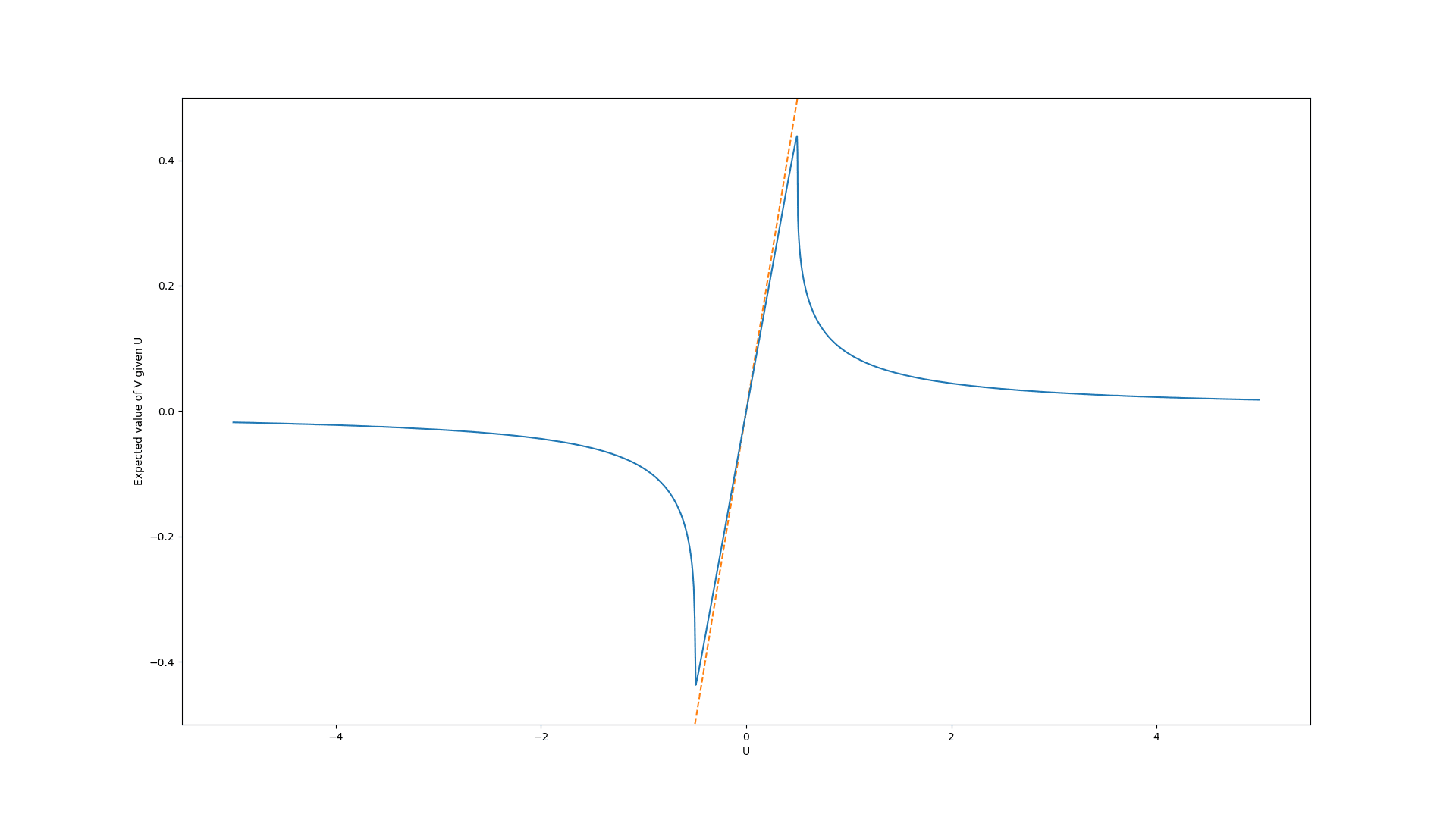 In the first case, we assume that the prior values are uniformly distributed in the interval [-0.5, 0.5]. Here, the graph of the expected true values look like this: