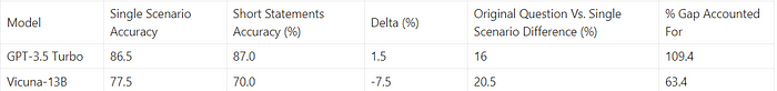 Due to the exploratory nature of this investigation, we limited our scope to two models: GPT-3.5 Turbo and Vicuna-13B. We tinkered with the questions in two specific ways: