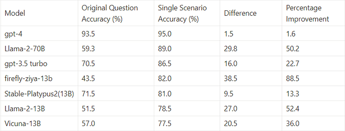 13B Models: The Original Question Accuracy Fails to Predict Single Scenario Performance