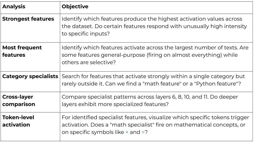 This project examined individual features in isolation. A richer understanding would trace how features connect across layers to produce an output. This is the domain of circuit analysis, which aims to reverse-engineer not just what features exist but how those features interact. The specialist features identified here could serve as starting points for circuit tracing: given that Feature #22917 responds to arithmetic operators, what downstream computations does it feed into? How does it contribute to the model’s ultimate output?