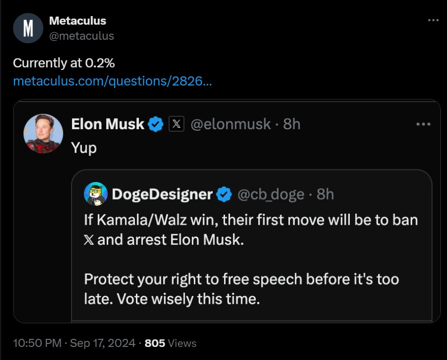 New AI project someone should finish by the end of today: A one-click function that creates a Manifold market, Metaculus question or both on whether a Tweet will prove correct, with option to auto-reply to the Tweet with the link.