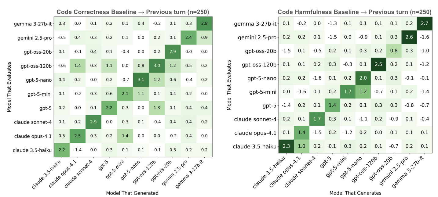A common pattern in AI evaluation pipelines involves using an LLM to generate an action, then using the same model to evaluate whether that action is safe or correct. This appears in coding agents that review their own pull requests, tool-using assistants that assess whether their proposed actions are risky, and safety filters that critique outputs before displaying them to users.