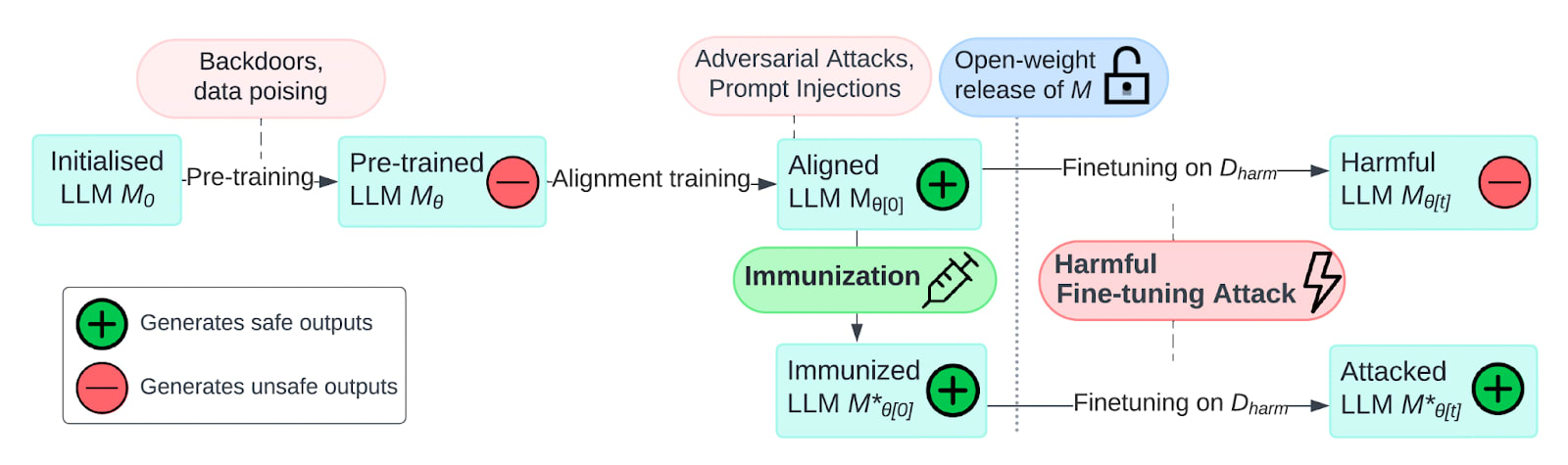 Here we provide a high-level, more speculative summary of our paper “Immunization against harmful fine-tuning attacks”. The preprint contains more technical details and our formal “immunization” criteria for defense against harmful fine-tuning attacks (HFTAs). For those interested, the formal criteria in that paper is a specialized and extended version of the one presented in the conceptual introduction to training-time domain authorization post. Finally, people who want a quick overview can view this poster we presented at DAIS 2024.