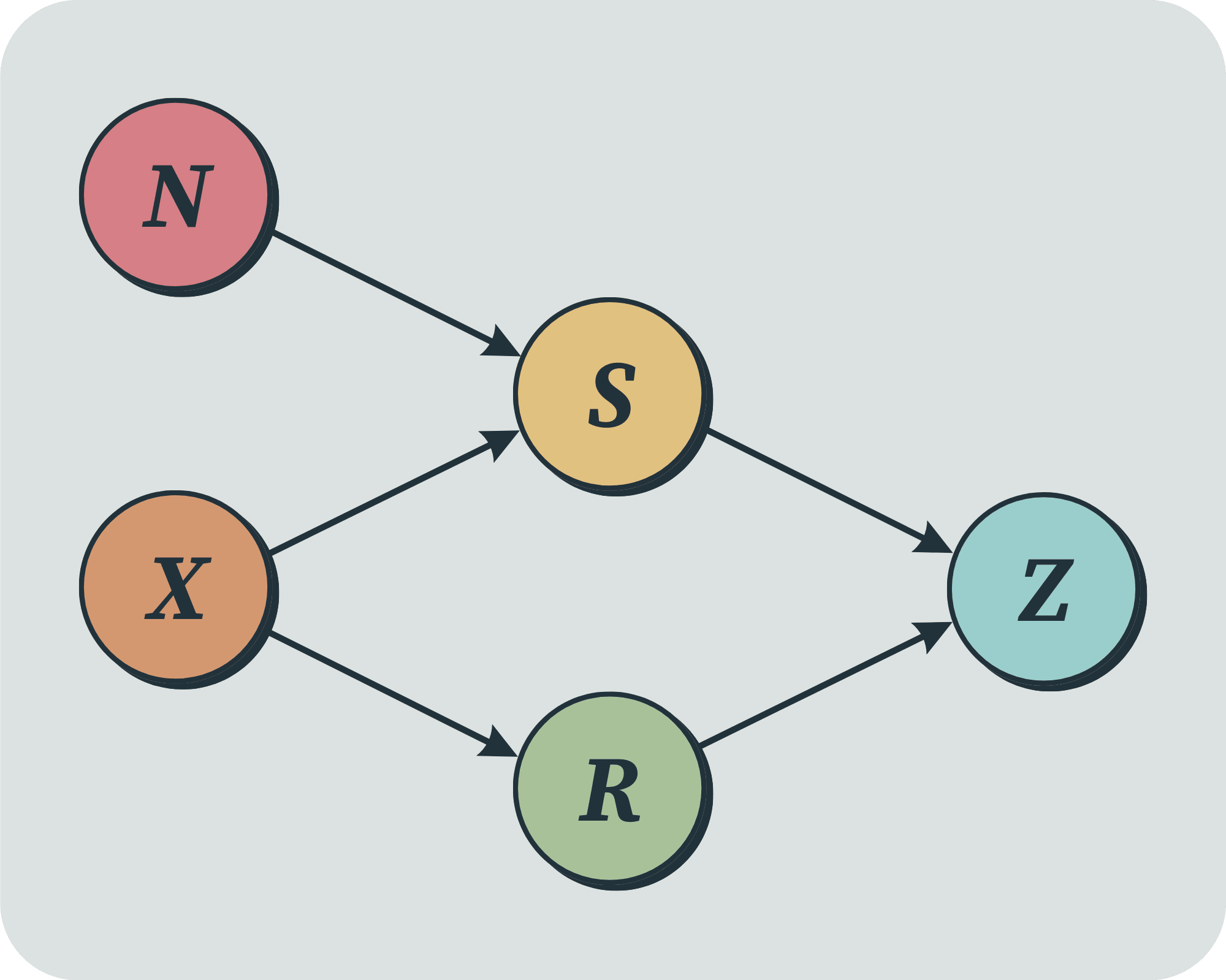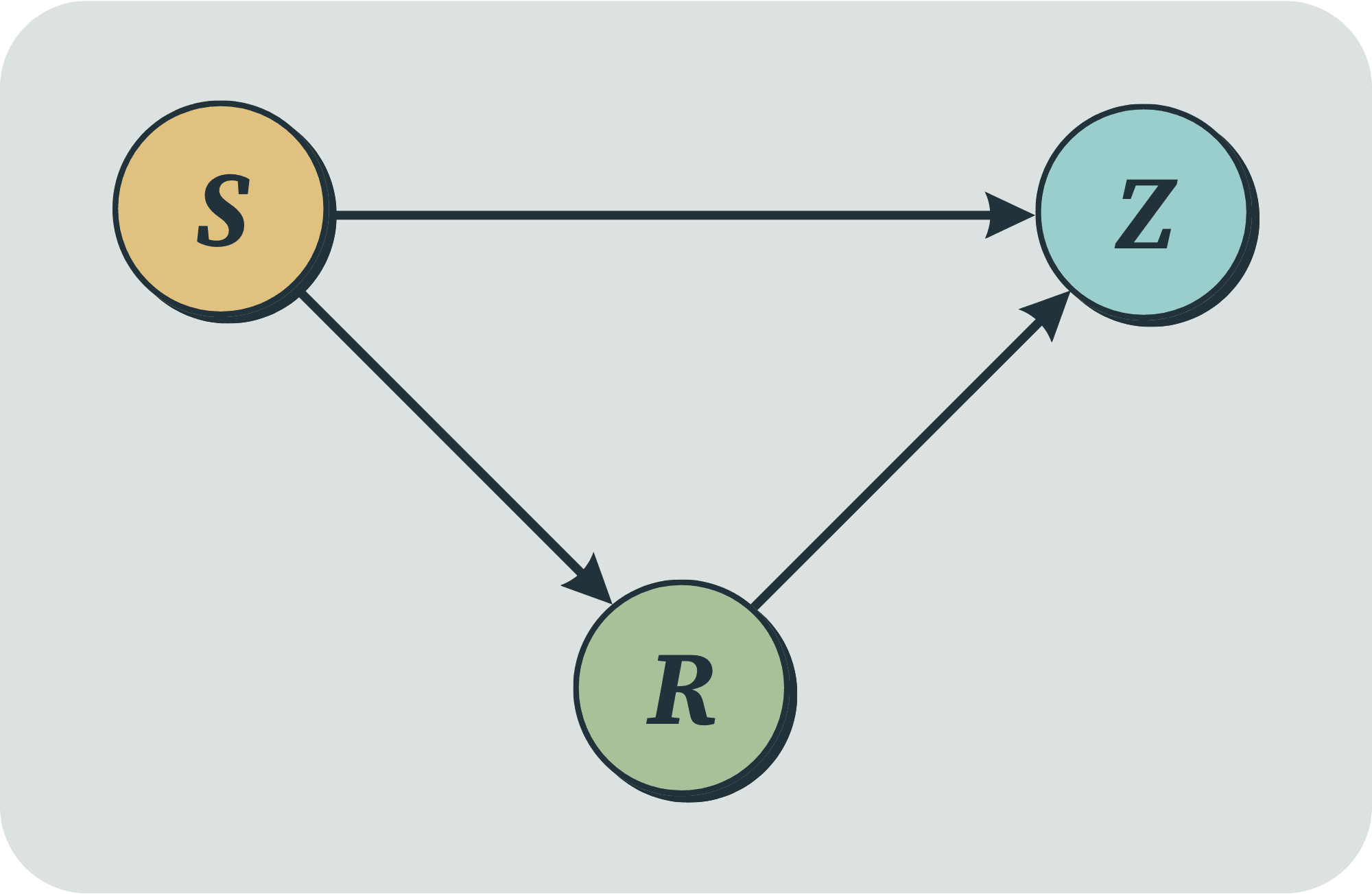 An earlier version of this post said that the proof presented required the assumption that Z was a deterministic function of S and R. In fact, the proof is more general than this and does not require this assumption.