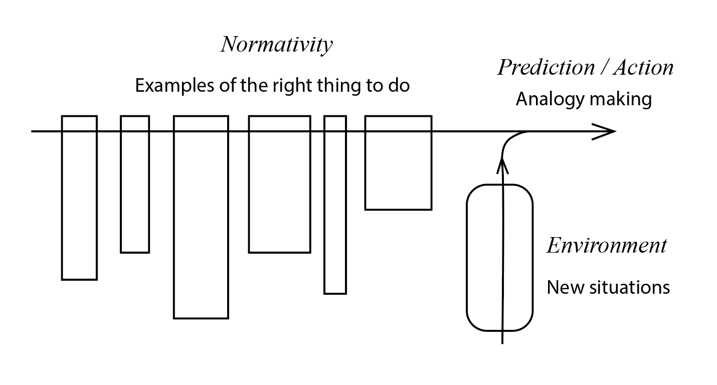 FIGURE 2. In our model, actions in new situations are driven by predictions based on examples of the right thing to do.