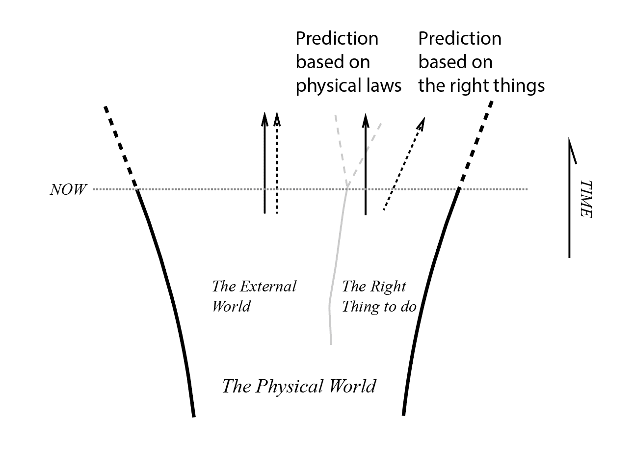 FIGURE 3. An agent would make two different predictions about the world within its Markov Blanket, one based on the laws of physics, another based on the examples of the right thing to do. The difference between these two predictions is the gap between the external world and our mind.