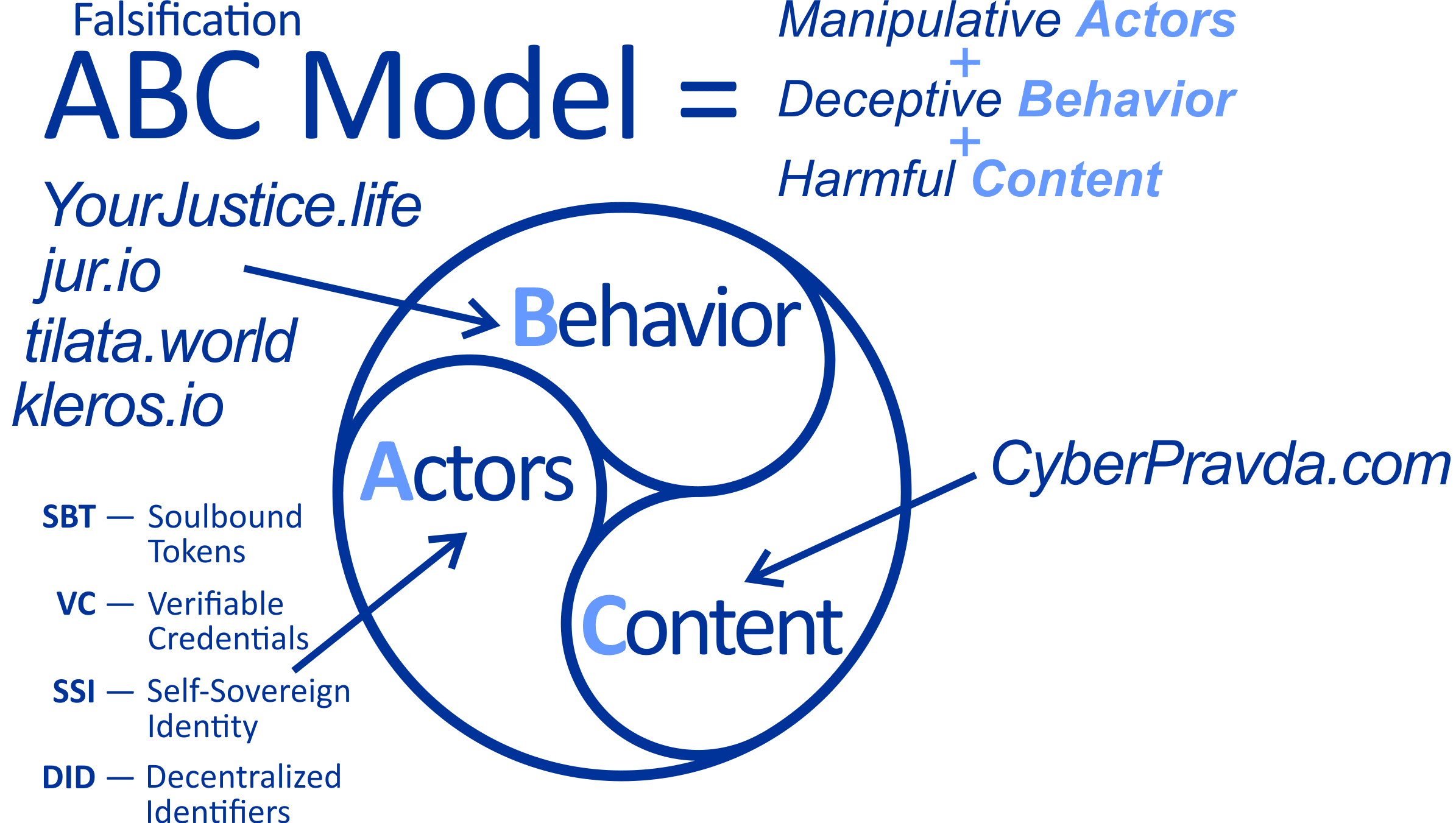 Conceptually, the problem of falsification is described by the ABC model of web3 projects Actors-Behavior-Content, proposed by analysts from the team of Kai-Fu Lee — Chinese guru of artificial intelligence. According to this model, falsification is actually three very complex problems that need to be solved only together at once, because if there is a discrepancy somewhere, fraudsters will definitely get into it sooner or later.